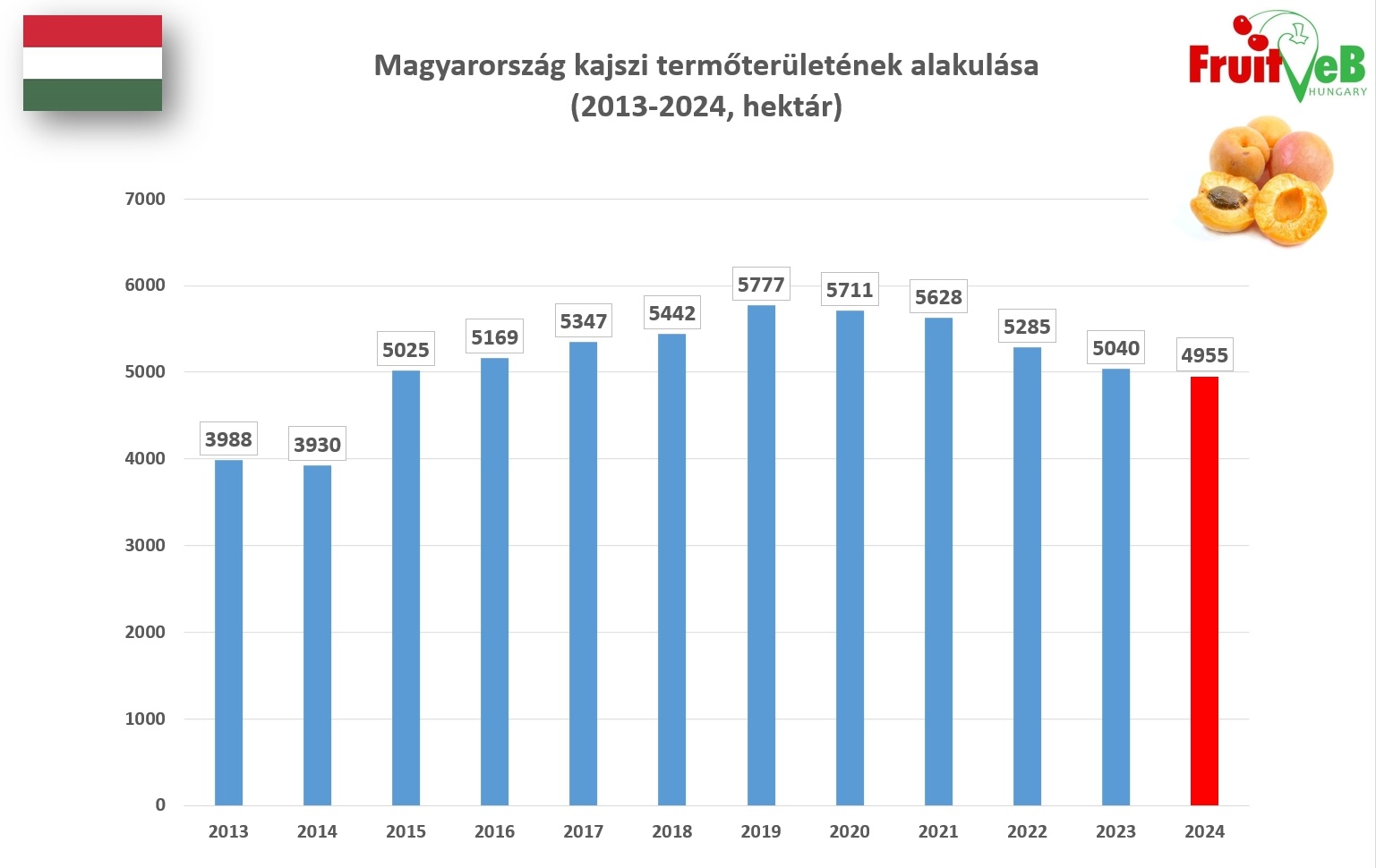 A hazai kajszitermés 2018 előtt, évjárattól függően 20 és 35 ezer tonna között mozgott. Azóta, különösen a gyakori és évi többszöri tavaszi fagykárok okán, a termésbiztonság nagyon jelentősen romlott, a termés egyre inkább kiszámíthatatlan, a termelés kockázata erősen fokozódott. Az erős fagykárral sújtott, rossz évjáratokban (2018, 2020, 2021, 2023) mindössze 6-8 ezer tonna kajszit szüreteltünk, míg a jó évjáratokban 20 ezer tonna fölött volt a termés (2019: 37 ezer tonna, 2022: 24,3 ezer tonna).
