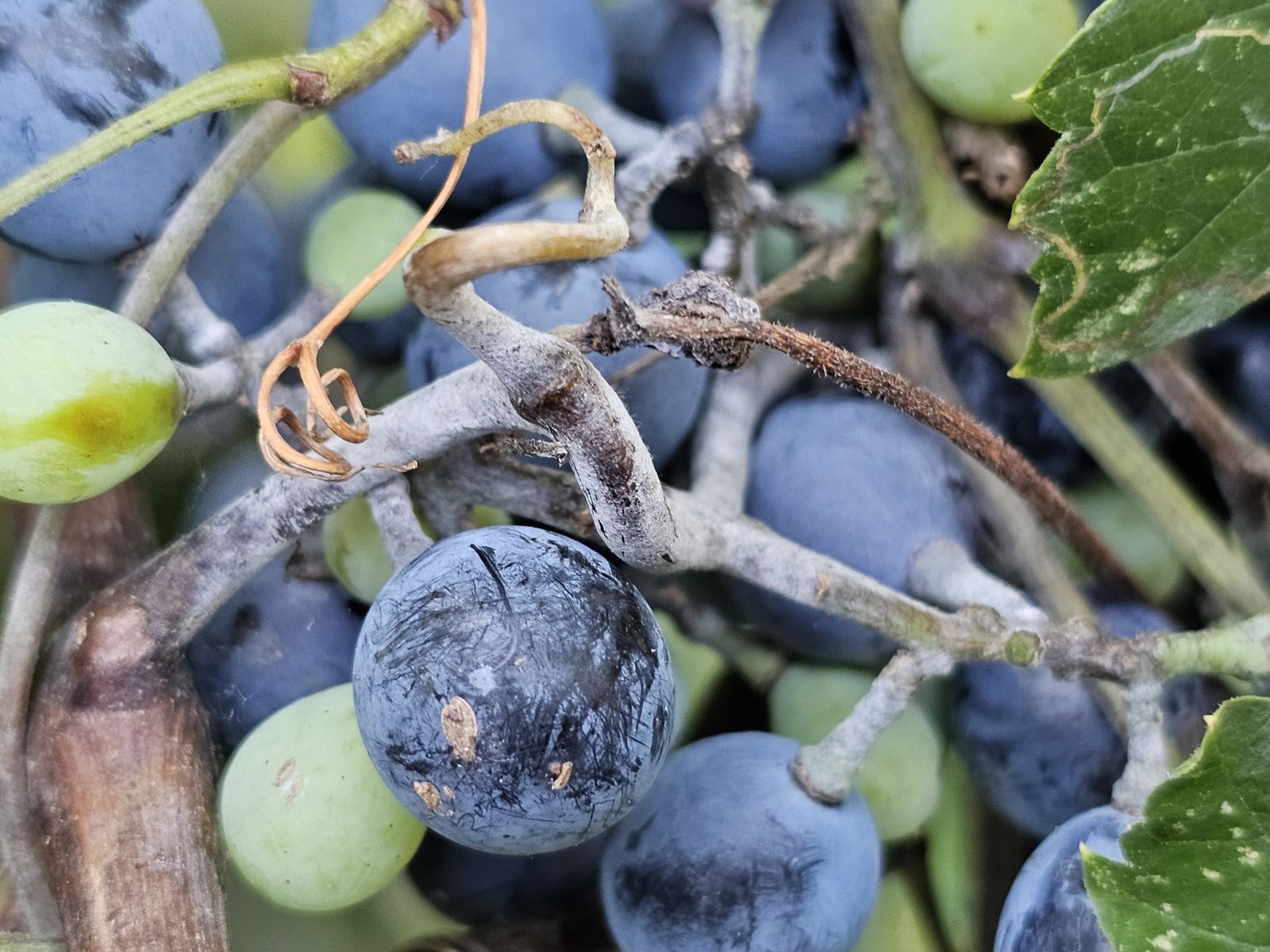 Az olaj és a kén házi kombinációjával is el lehet végezni a lomblemosást. Ezt akár az első 2026-os védekezésnek is felfoghatjuk. A gomba a szőlő mindegyik részét, pl. a kocsányt is megfertőzheti. Mai fotó.