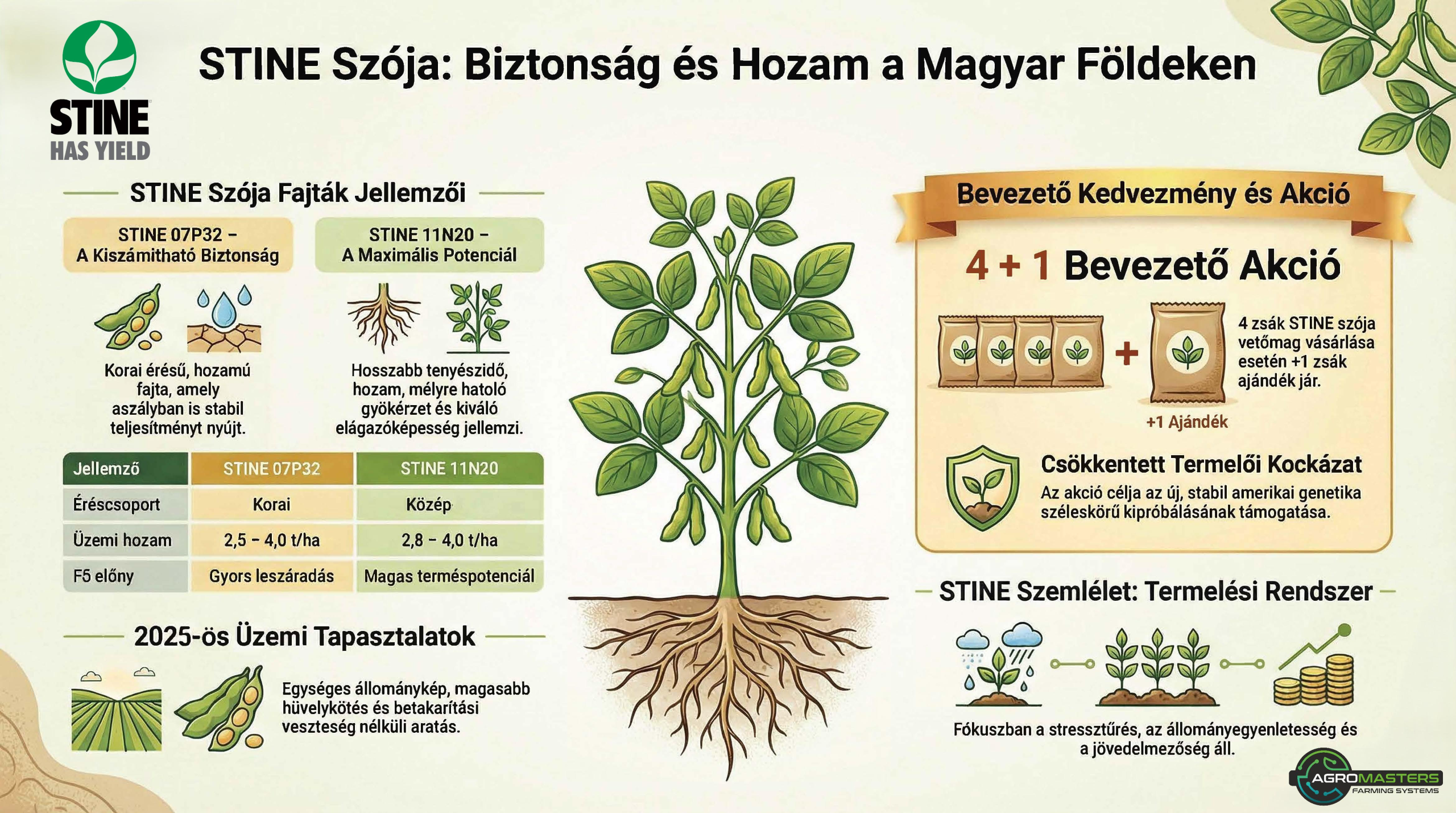 A STINE szója hazai bevezetéséhez kapcsolódva az Agro Masters Hungary Kft. bevezető akciót hirdet: