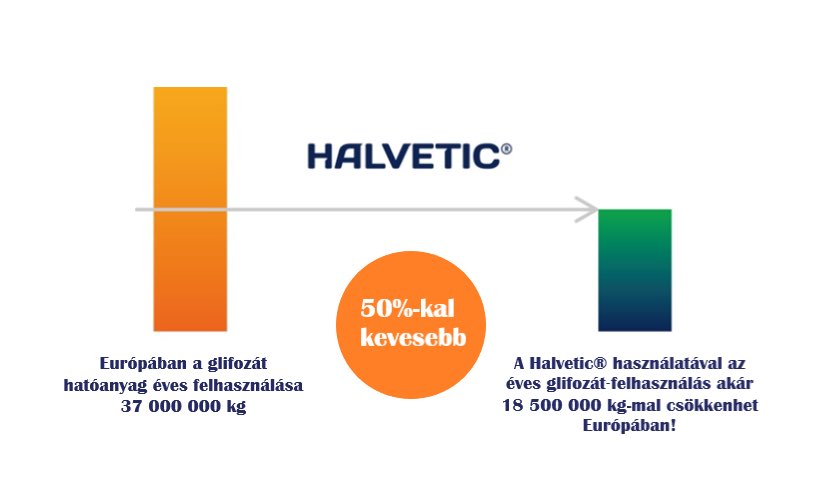 2. ábra A Halvetic® felhasználásával akár felére csökkenthető a glifozát felhasználása Európában (Forrás: Qemetica, https://halvetic.com/hu)
