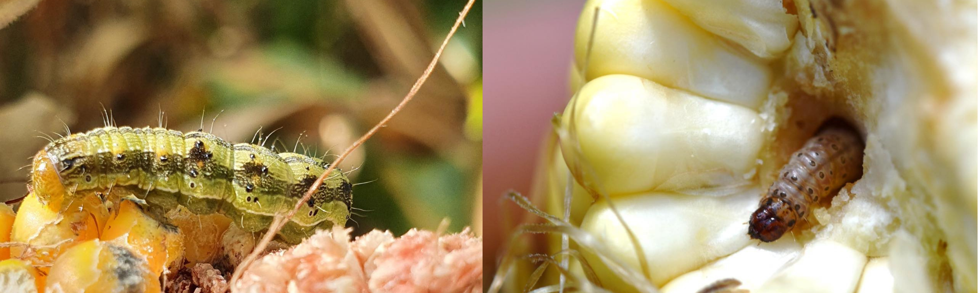 Gyapottok-bagolylepke és kukoricamoly lárvái kukoricacsőben (Fotó: KITE Zrt.)