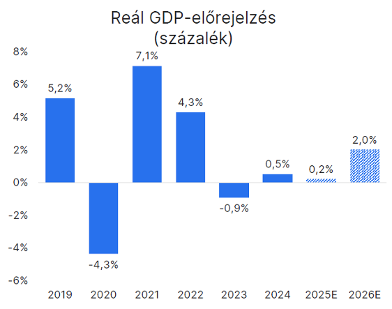 Az Erste elemzői szerint az idei évre várható 0,2 százalékos GDP-növekedés, vagyis lényegében stagnálás után jövőre 2 százalékkal bővülhet a magyar gazdaság teljesítménye. A reálbérek várható emelkedésének, és a kormányzat jóléti intézkedéseinek köszönhetően a háztartások fogyasztása továbbra is segíti a hazai gazdaságot – ennek mértéke, támogató szerepe akár erősödhet is. Az ipar kilátásai ugyan csak lassan javulnak, és a korábbi nagy beruházások termőre fordulása is késik, ám az Európai Unió és az Egyesült Államok között megszülető megállapodás hatására a vámháború okozta bizonytalanság valamelyest enyhült. Ez, a német gazdaság várt élénkülésével együtt, ismét növelheti a keresletet a magyar exporttermékek iránt, ami lassan a várva várt beruházási fordulatot is elhozhatja.