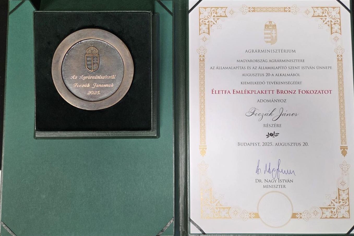 Az elismerést az agrárminiszter adományozta a termelői és térségi összefogásért, valamint a mezőgazdasági innováció előmozdításáért végzett munkájáért.