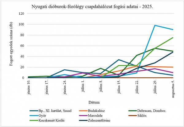 Nyugati dióburok-fúrólégy csapdahálózat fogási adatai