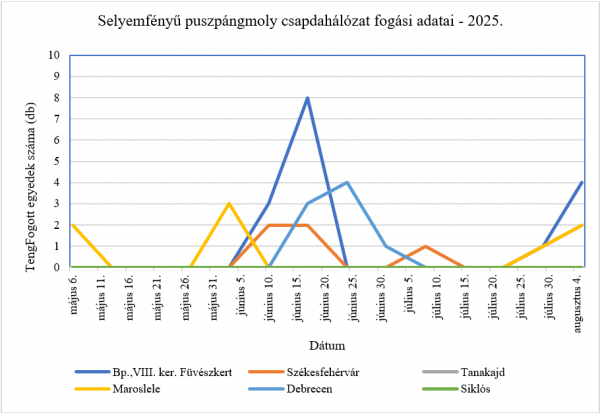 Budapest VIII. kerület, Székesfehérvár és Maroslele megfigyelő ponton figyeltek meg selyemfényű puszpángmolyt.