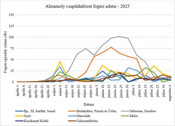 Keleti gyümölcsmoly csapdahálózat fogási adatai