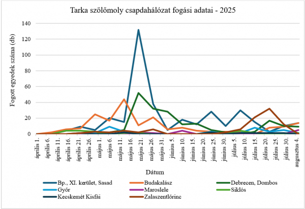 Tarka szőlőmoly csapdahálózat fogási adatai