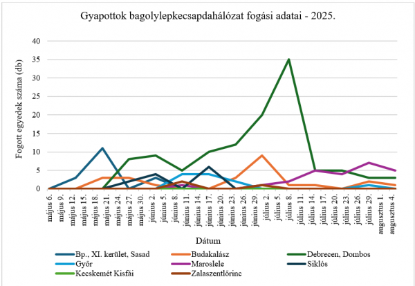 Gyapottok-bagolylepke csapdahálózat fogási adatai