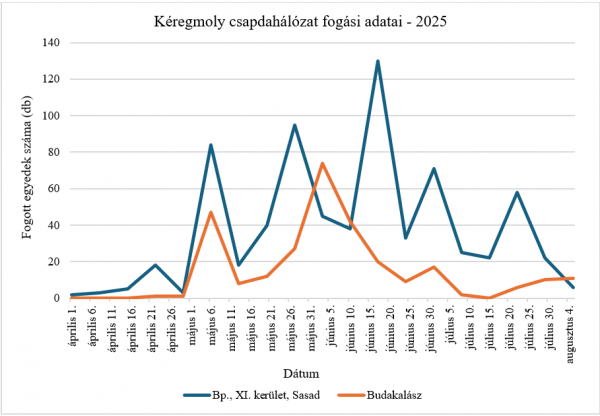 Sasad megfigyelő ponton csökkent, Budakalászon pedig enyhén nőtt a kéregmolyok száma.