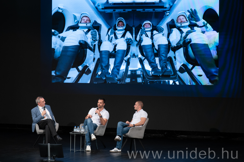 A pályázati lehetőség meghirdetésétől kezdve a jelentkezés lezárultán át a landolásig, a HUNOR Magyar Űrhajós Program kiválasztási folyamatáról, a kiképzés kihívásairól beszélt Kapu Tibor és tartalékosa, Cserényi Gyula a Debreceni Egyetem oDEon Színházban, ahol középiskolásokkal és egyetemistákkal találkoztak.