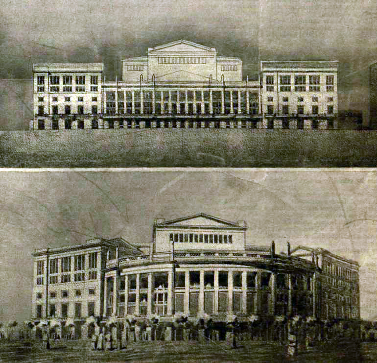 Medgyaszay István első díjjal jutalmazott tervei (új Nemzeti Színház) a Vasárnapi Ujságban.