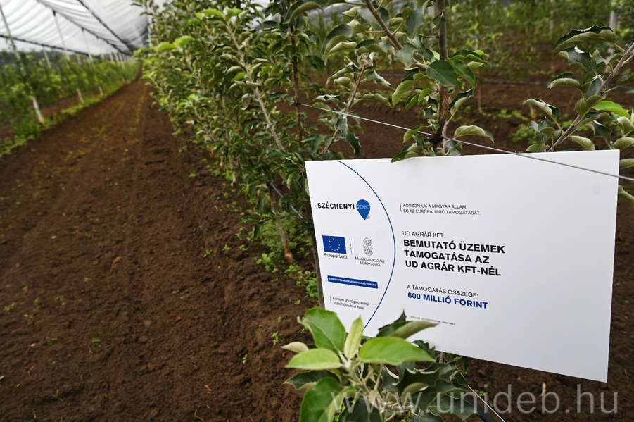 – Az UD Agrár Kft. missziója, hogy az elérhető legmagasabb, tudásra alapozott kutatások, fejlesztések és innovációk végrehajtásával és annak átadásával szolgálja a kutatást, az innovációt, az oktatást, valamint a gyakorlati képzést és szaktanácsadást a helyi régiókban a lokális társadalmi elvárások, illetve igények alapján. Ennek megfelelően a pályázat során 3 hektáron telepítettünk intenzív almaültetvényt, előnyben részesítve a szárazságtűrő fajtákat, mint az Idared, a Golden Reinders, illetve a Granny Smith. Az infrastruktúra fejlesztéseként egy csúcstechnológiás pneumatikus vetőgépet, parcella kombájnt és egy Massey Ferguson traktort vásároltunk. A napelemrendszer kiépítése és telepítése mellett beszereztünk egy hordozható, energiatárolóval ellátott, nagy teljesítményű solar-rendszert is – sorolta a fejlesztés eredményeit Tóth Attila Sándor.