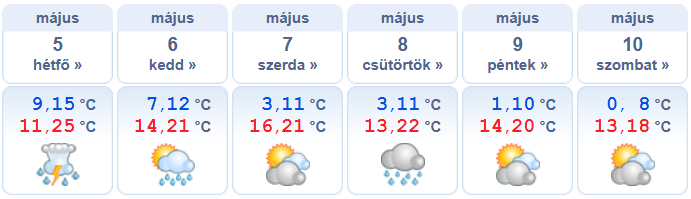 Heti időjárás előrejelzés 2025.05.05 – 2025.05.10.