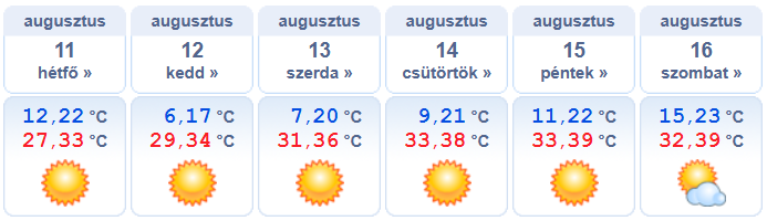 Heti időjárás előrejelzés 2025.08.11 – 2025.08.16.