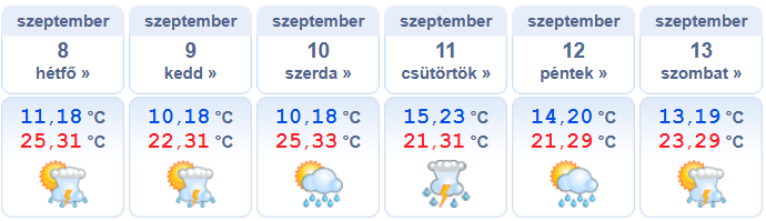 Heti időjárás előrejelzés 2025.09.08 – 2025.09.13.