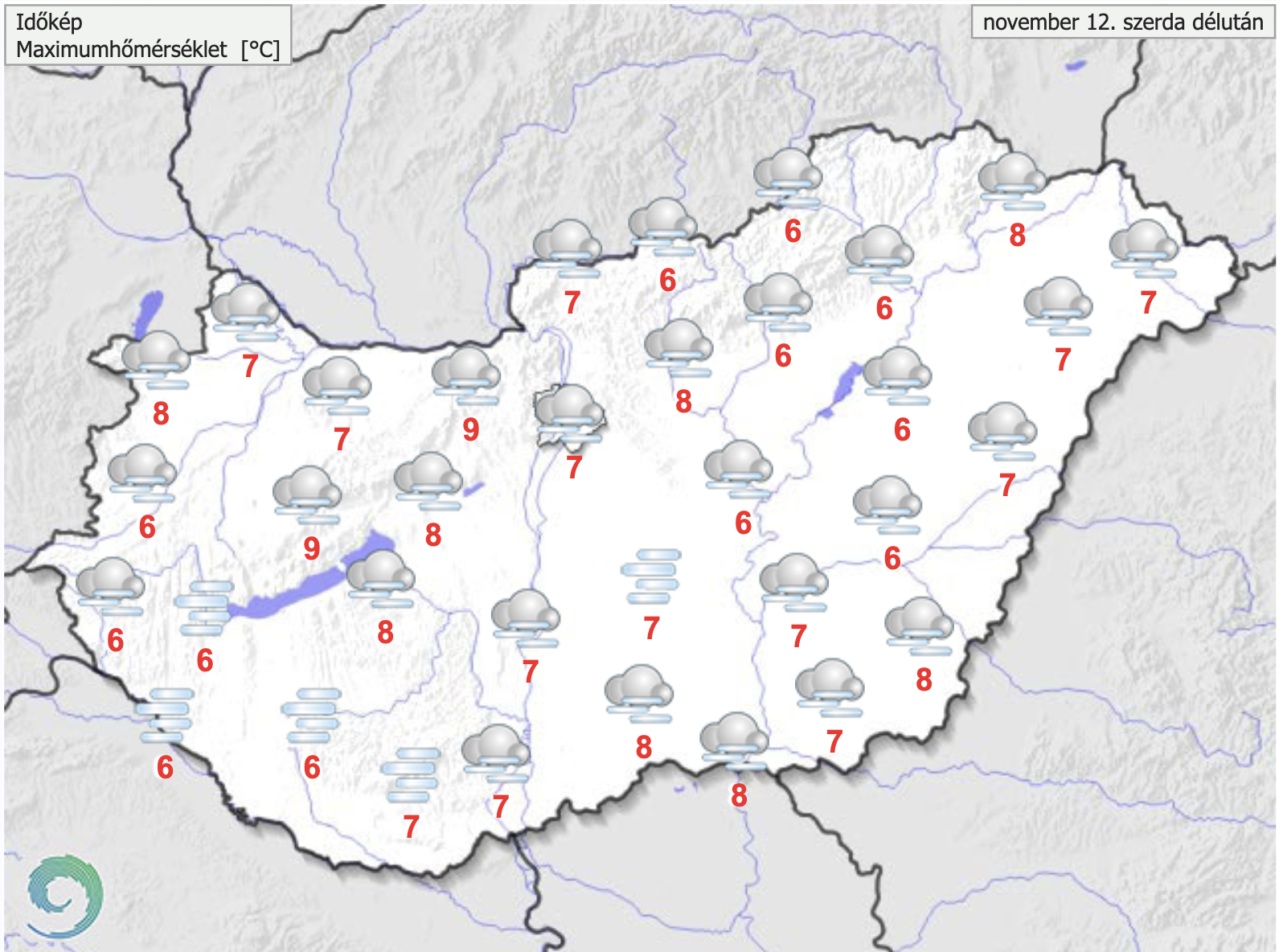 Az ország legnagyobb részén tartósan borult, párás, ködös idő várható, napközben némileg javulhatnak a látási viszonyok. Kisebb körzetekben azonban napos maradhat az idő, illetve szakadozhat a köd, rétegfelhőzet, melyre legjobb esély az Alföldön, illetve a hegyvidéki tájainkon van. Legfeljebb jelentéktelen szitálás fordulhat elő néhol. A légmozgás gyenge vagy mérsékelt lesz. A legmagasabb nappali hőmérséklet általában 5, 10 fok között alakul, a kisebb, napos körzetekben viszont 10 fok feletti maximumok is lehetnek.