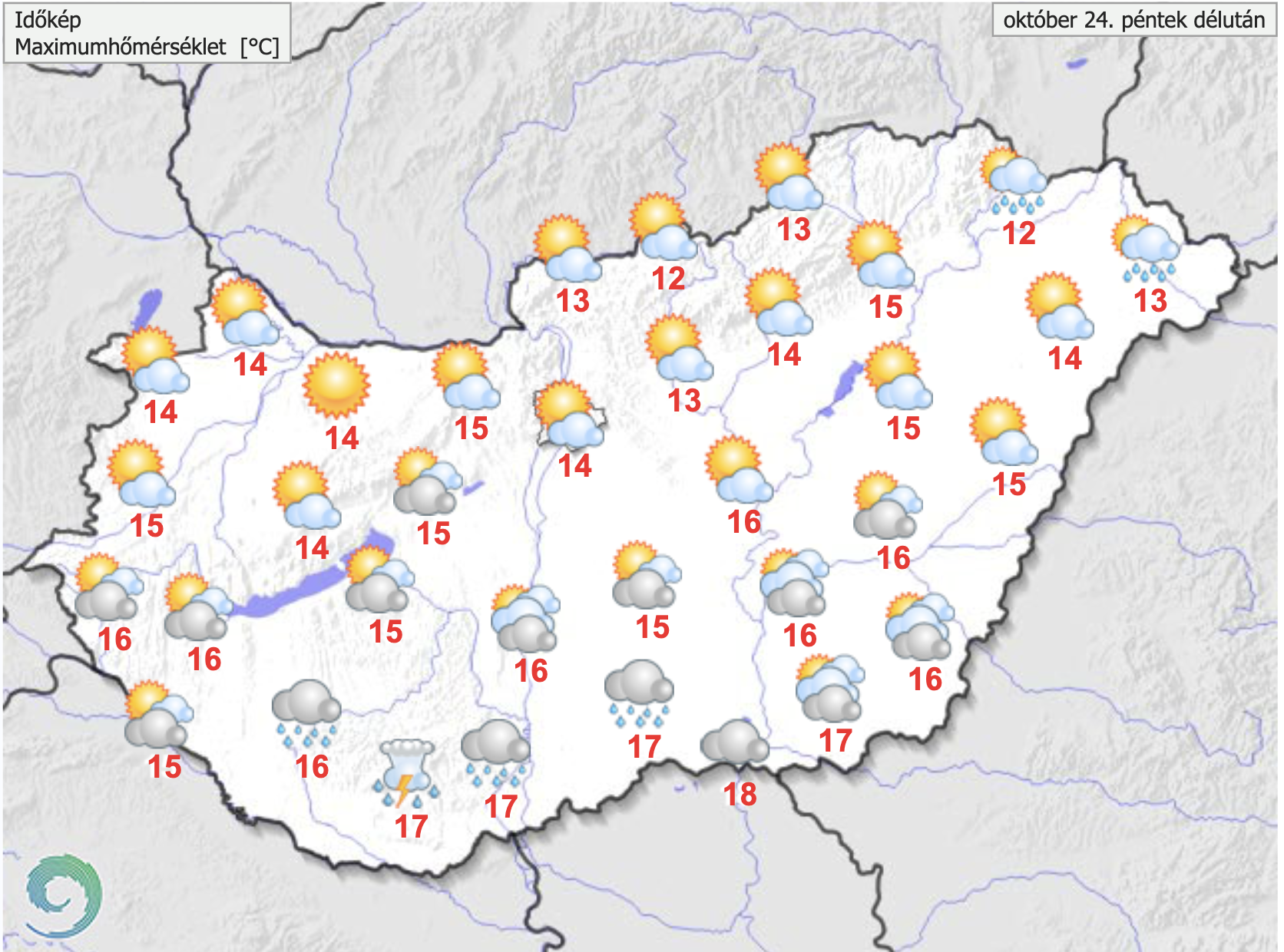 Délelőtt nyugat felől fokozatosan csökken a frontális felhőzet, a csapadékzóna már egyre inkább csak az északkeleti tájakon okozhat egyre gyengébb csapadékot. A front mögött sokfelé kisüt a nap, de délután főként hazánk délnyugati, délire felére ismét masszívabb felhőzet érkezhet, helyenként eső, zápor, sőt egy-egy zivatar sem kizárt arrafelé. A nyugati, északnyugati szelet az ország északkeleti felén erős, olykor viharos lökések kísérik, estére azonban arrafelé is veszít erejéből a légmozgás. A legmagasabb nappali hőmérséklet 11 és 18 fok között alakul.