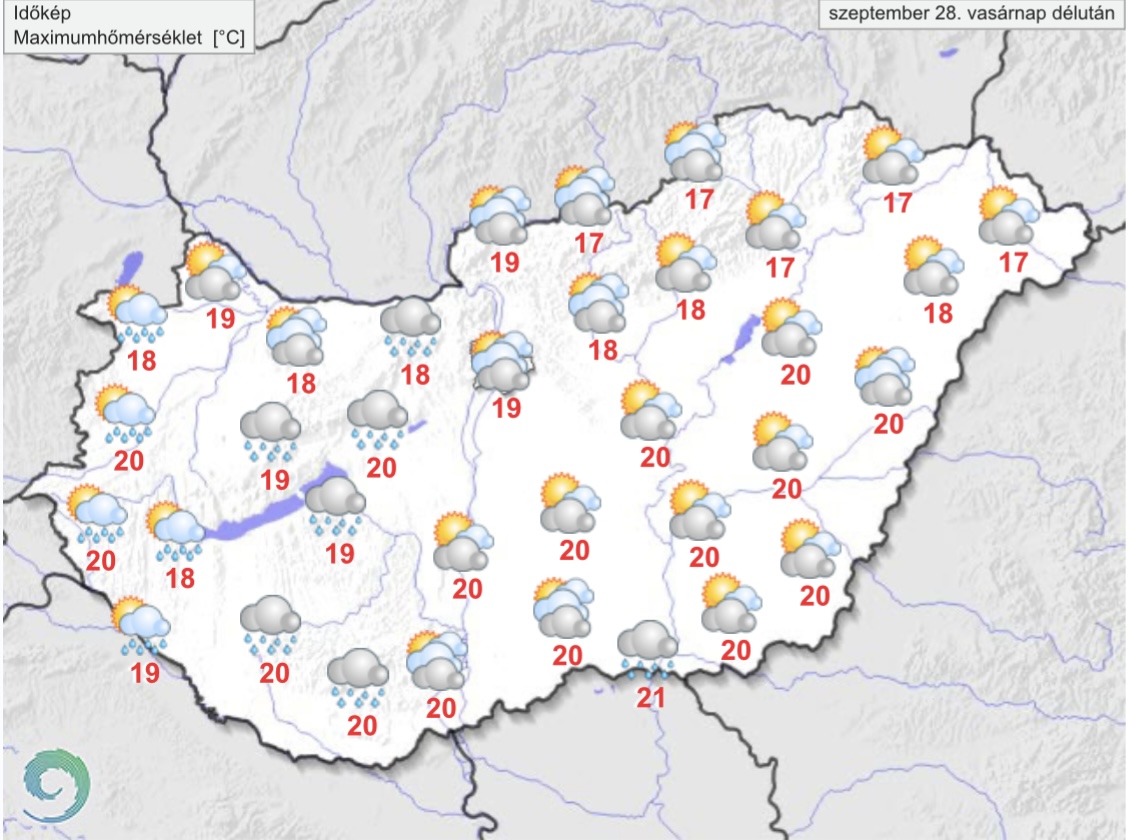 Folytatódik az alapvetően felhős idő, de a változó vastagságú felhőzet mellett általában hosszabb-rövidebb napos időszakokra számíthatunk. Az északkeleti tájak kivételével elszórtan fordulhat elő időszakos eső, zápor, a Dunántúli-középhegység területén zivatar sem kizárt. Az északias szél helyenként megélénkül. A csúcshőmérséklet általában 15 és 21 fok között valószínű.