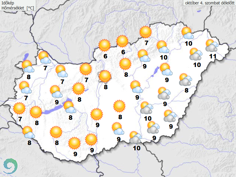 Sok napsütésre számíthatunk, majd délutántól nyugat felől gyors ütemben beborul az ég. Reggel, délelőtt a délkeleti, keleti határ közelében gyenge eső még előfordulhat, majd kora estétől északnyugat felől egyre nagyobb területen valószínű eső, zápor. A szél délnyugatira, délire fordul, megélénkül, néhol erős lökések is kísérhetik. A legmagasabb nappali hőmérséklet 12 és 17 fok között várható. Késő estére 6 és 12 fok közé csökken a hőmérséklet.