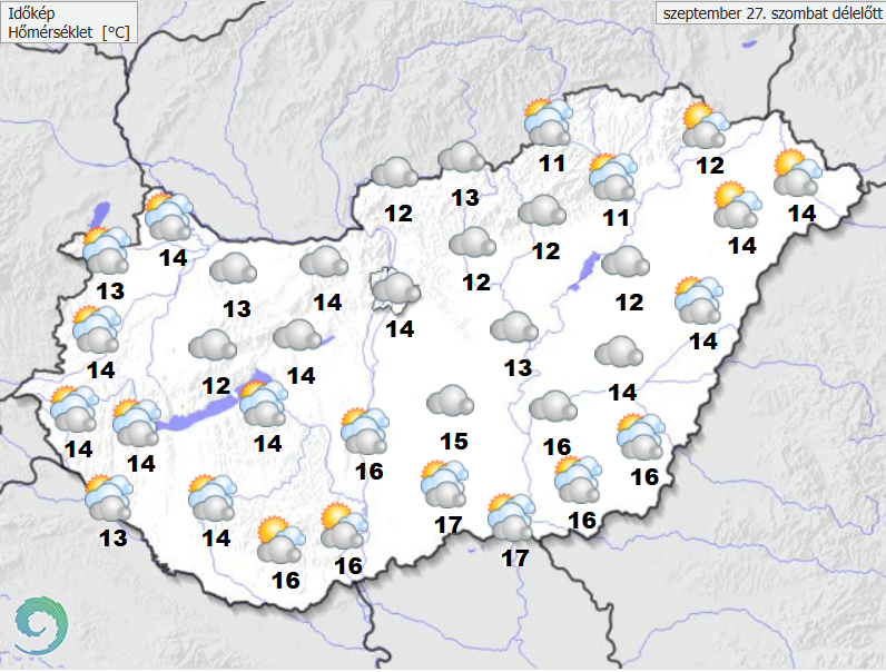 Alapvetően erősen felhős idő várható, de nagyobb területen kisüthet rövidebb-hosszabb időre a nap. Csak kevés helyen fordulhat elő kisebb csapadék. A keleties szelet időnként élénk lökések kísérhetik. A legmagasabb nappali hőmérséklet többnyire 14 és 21 fok között valószínű. Késő estére 9 és 16 fok közé csökken a hőmérséklet.