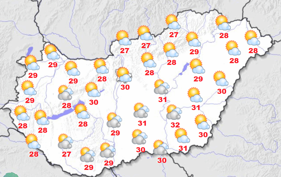Túlnyomóan derült, napos, száraz idő várható. Többnyire mérsékelt marad a légmozgás. A legmagasabb nappali hőmérséklet 26 és 32 fok között valószínű. Késő estére 17 és 25...