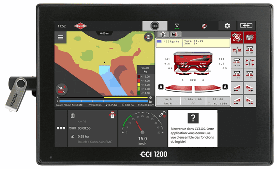 A KUHN CCI CONNECT-nek köszönhetően könnyen csatlakoztatható a KUHN CCI 800 vagy CCI 1200 terminál az internethez. Az adatokat (táblatérkép, kijuttatási térkép) távolról is lehetséges továbbítani, hogy megszakítás nélkül legyen végezhető a munka. Így elfelejthető a pendrive használata, csupán internet kapcsolat szükséges.