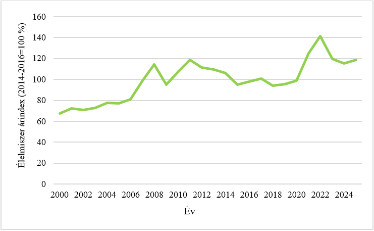 Forrás: NAK 1. ábra: Élelmiszer árindex 2000 és 2025 között