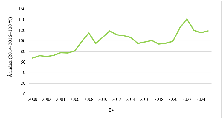 1. ábra: Élelmiszer árindex 2000 és 2025 között