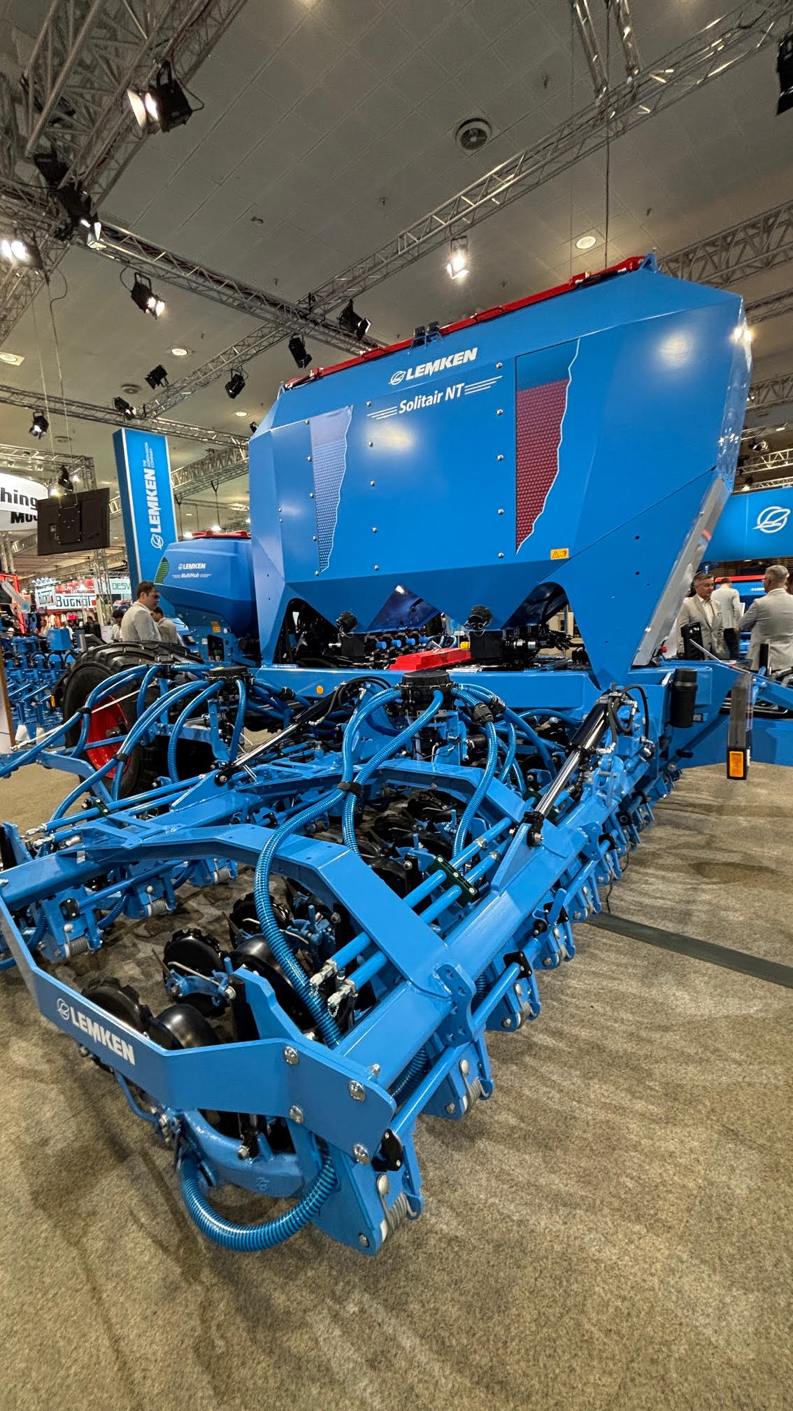 A megújult vetőgépes paletta minden tipusát bemutatjuk. Látható volt a Solitair NT ( NO Till vetőkombináció) amit a LEMKEN által néhány éve felvásárolt Equalizer vetőgépgyártó alapjaira támaszkodik, ami az Ausztrál és a Dél-Afrikai piacokon piacvezető ebben a technológiában. Mivel a vízmegtartás abban a régióban is fontos, így a magyar gazdák ne csalódnak majd benne! A Solitair DT ( tárcsa előmunkálóval szerelt vetőkombináció), a Solitair PT ( forgóboronás előmunkálóval szerelt vetőkombináció), és a függesztett Solitair MR illetve a TF ami ugyanazt az új, szabadalmaztatott, precíz adagolórendszert tartalmazza mint a nagyobb testvérei, ami osztott magtartályok esetén vetőmagot és műtrágyát is képes adagolni. A nagy munkaszélességű vetőgépek kategóriájában a Magyarországon már 2024-ben egy bemutatókörúton bemutatott Solitair ST 12 méteres vetőgép is megmutatkozik, szintén osztott magtartállyal. Ezek a fejlesztések a jövőbe mutatnak és ebből a frissített vetőgép portfólióból a budapesti kiállításra is több gépet viszünk és kiállítunk.
